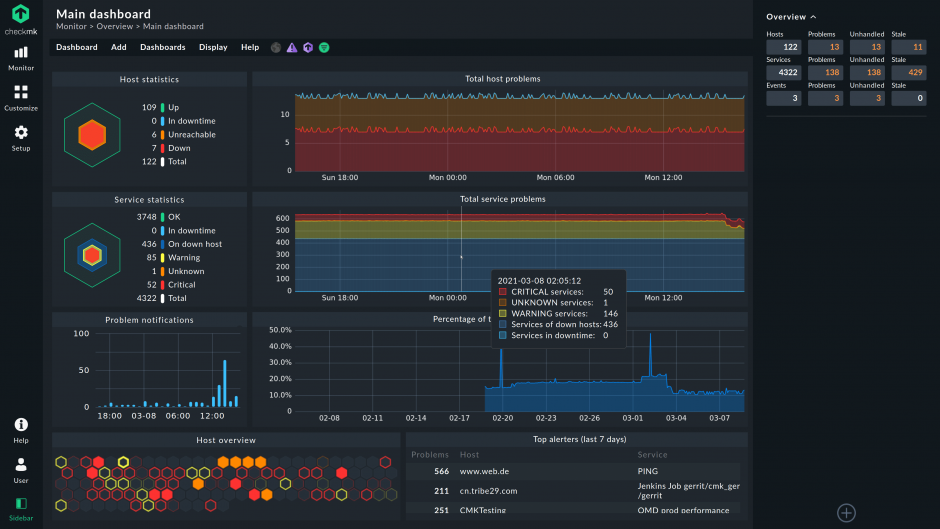 Checkmk Cloud试用版是完整的、无限制的版本。您可以使用所有功能,并监控您需要的任意服务数量。试用有效期为30天。