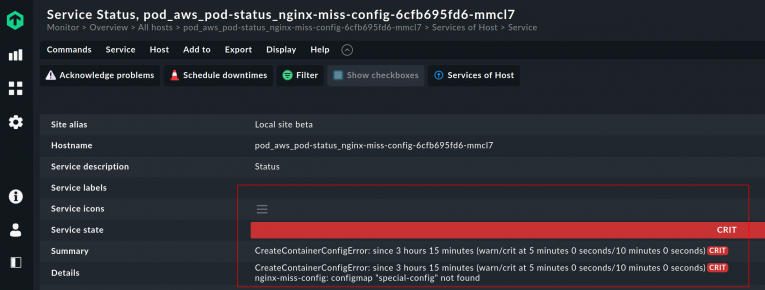 例如,如果一个 pod 无法运行,Checkmk 可判断出是哪个容器导致的问题,以及出现了何种错误。